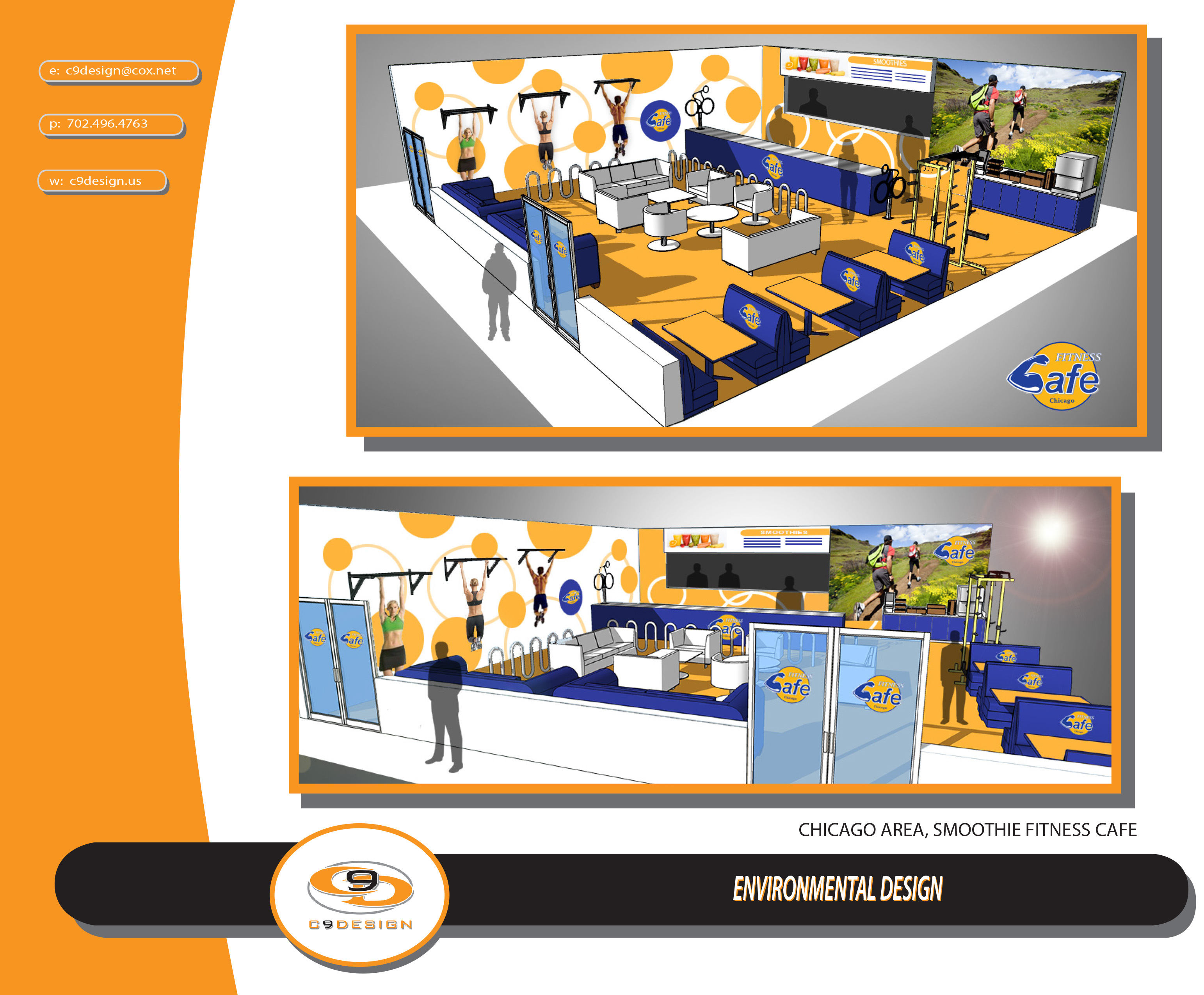 Chicago area smoothie café featuring brand identity and environmental design presentations.